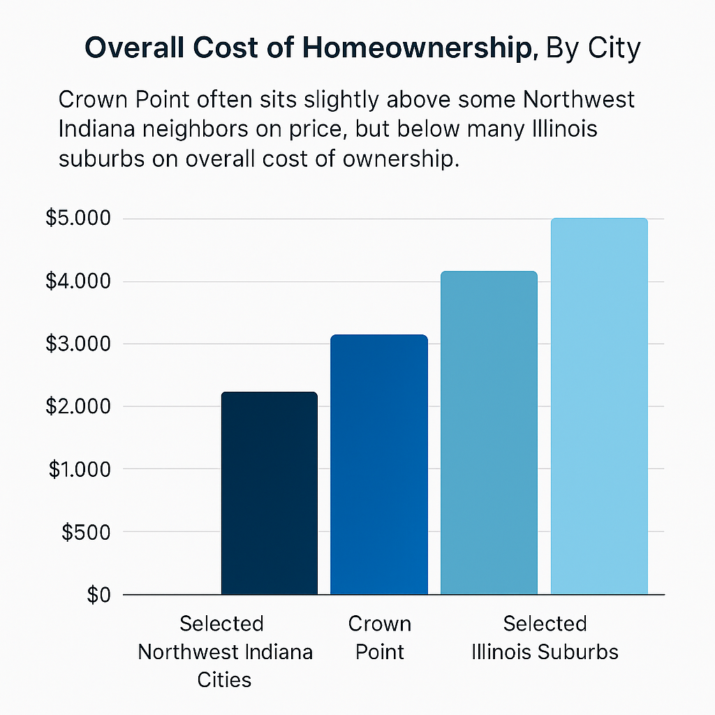Buyers often ask a simple question. Is Crown Point still affordable compared with other parts of Northwest Indiana and nearby Illinois suburbs. The honest answer is that prices have risen over the last several years, but many families still see more value per dollar in Crown Point housing than in many Chicagoland communities with similar schools and amenities.